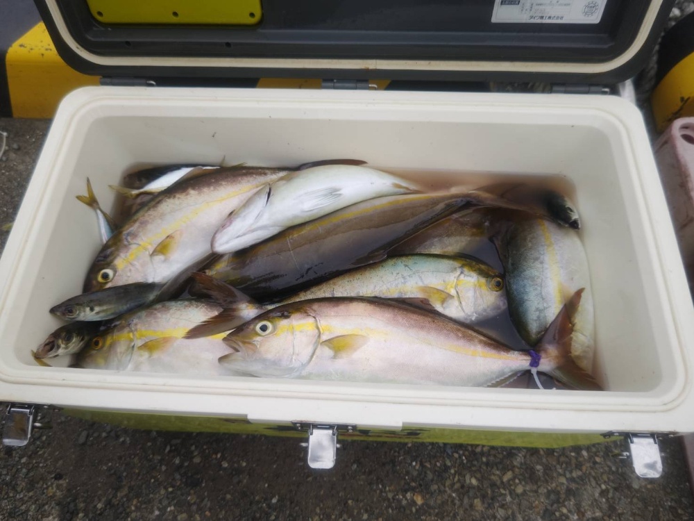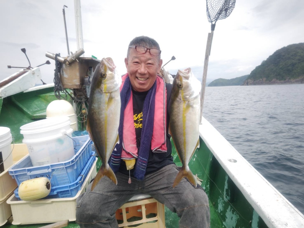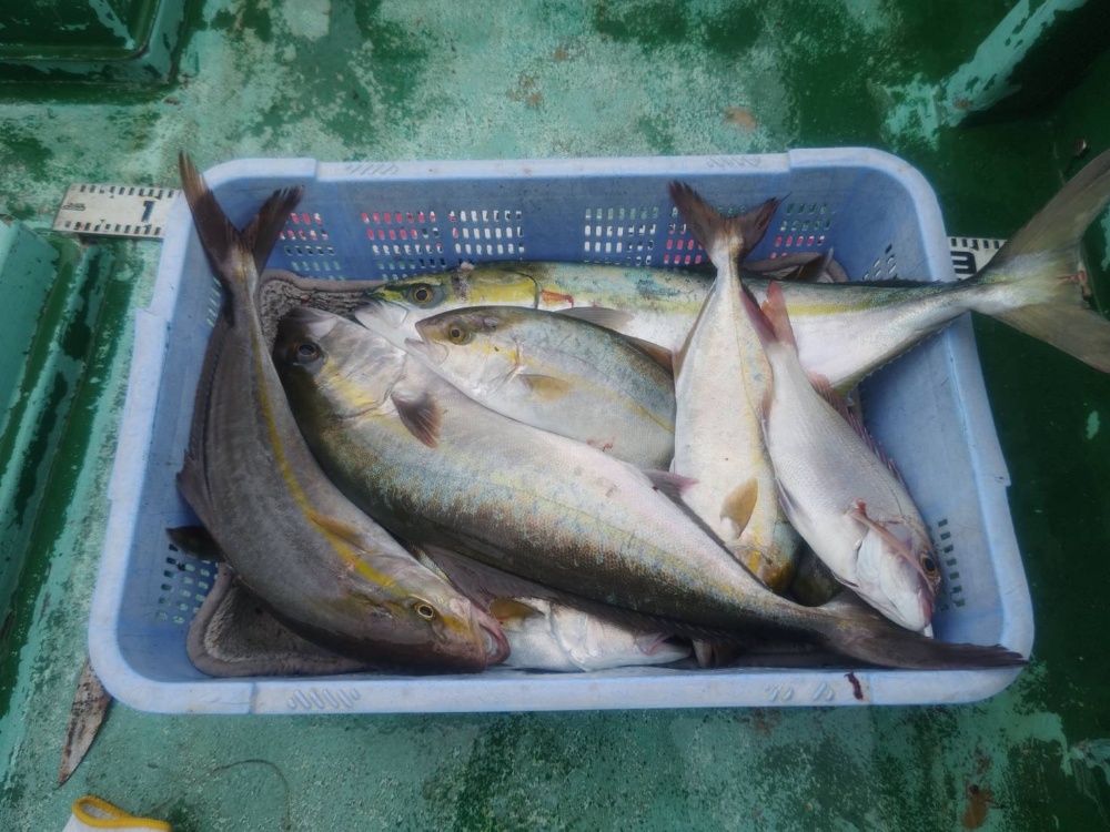 落とし込み釣りで、メジロ、カンパチの他にシオが釣れました、良い人で1人六匹の釣果でした。