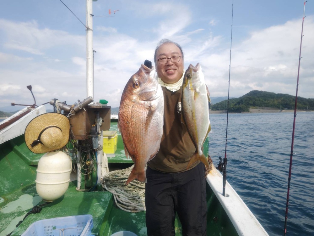 イサギ釣り中ベイト釣れるので1人の人落とし込み専門でしていてハタ、鯛、カンパチGETしました。